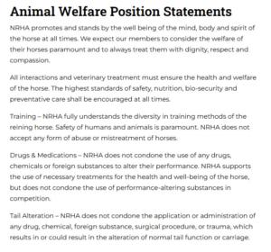 Read the NRHA Welfare Statement, and it all sounds wonderful, but dig a little deeper, and all is not as they say